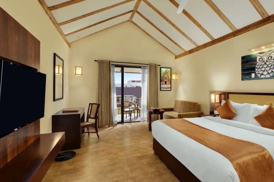 The premium cottage stand with all modern amenities. These premium cottages would help sustain the needs of those looking for that little extra bit of opulence while staying in one of the best hotels in Vijaynagar.Each cottage offers serene views of nature that will help reconnect you with the great outdoors, furnished with just a little bit of elegance.